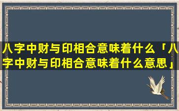 八字中财印相合 🌿 意味着命中财运和贵人运势较佳。