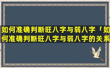 旺弱八字 🌷 的关系: