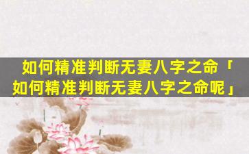 判 🐱 断无妻八字 🌷 的八字 🦟 特征: