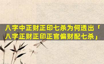 八字 🕊 中正财 🦟 正、印 🌻 、七杀透出的原因: