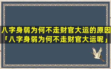 因此,八,字,身弱之人不宜走财官大运否则容易出现上 🌳 述问题影响自身健 🐺 康、事业和生活。