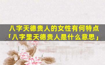 拥有八字 🌹 天德贵人的女性 🌻 特点: