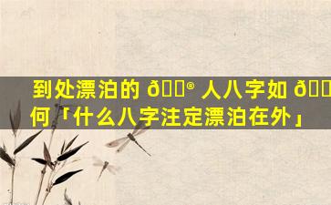 “八字漂泊”是指出生八字中驿马星较多,或有特殊流年运势导致一 🌺 个人频繁更换居所或工作环境一。般,而言八字漂泊之人命运会有以下几方面 🐳 的特征:
