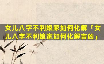 女儿八字 🌳 不利娘家化 🦍 解婚姻的方法 🐳