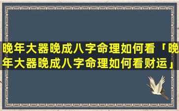 晚年大 🐶 器晚成八字命理财运分析
