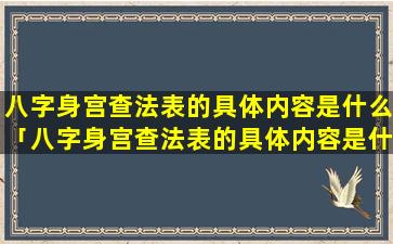 表身:男:以男性八 🐈 字为基准的身宫查法。