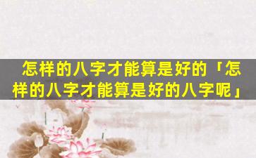 具有以上特点 🍁 的八字,一 🕷 般认 🐧 为是好的八字: