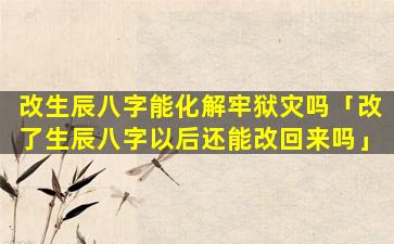 根据传 🐘 统命理学,八,字中的牢狱灾一般是由特定的星曜组合和刑冲克害造成的改生辰八字并不能直接化解牢狱灾。
