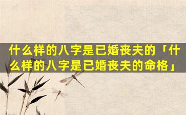 女命八字已 🐬 婚丧夫特 🐟 征 🐘