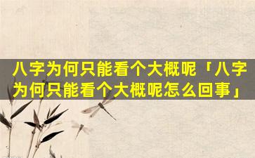 八字只能看个 💮 大概的原 🐈 因如下: