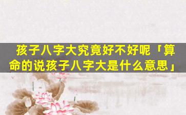 总体来说,“孩子八字大”并,非一概而论的好坏需要根据八字整体搭配和其他因素综合 🐒 判断。