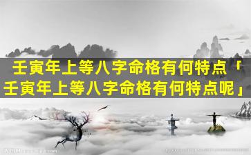壬 🌷 寅年上等八字命格特点: