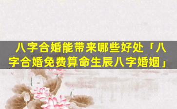 八字合 🐦 婚的潜 🐯 在 🐝 好处: