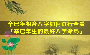 查看辛 🐞 巳年八字 💐 相合的方法: