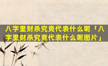 财杀,在八字中 🕊 代 🌴 表 🐎 :