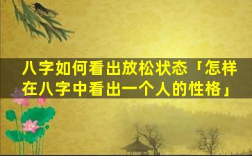在八字命理中,以下 🐈 特征可能表明一个人处于放松状态:
