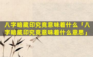 八字暗藏印的 🦋 含义有以下 🌻 几个方面: