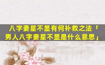 八字妻星不显 🐎 的补救之法: