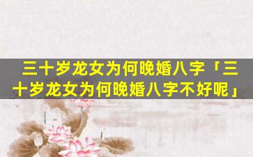“三十岁 🕷 龙女为何晚婚八字不好呢”这句话 🌳 中的说法是 🌴 不科学的。