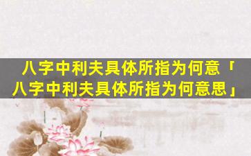 八字中“利夫 🌿 ”具体所指的含义如下 🕷 :