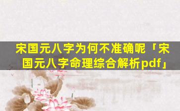 传统八字学中并无“宋国元八字”因 💮 ,此无法判断其是否准确。