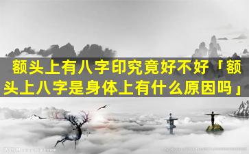 额头上的八字印是否好坏并没有确凿的科学 🌴 依据。传统相学的看法因流派不同而异,现 🦅 。代科学,则,将,其。解释为情绪紧张或焦虑的标志因此对于八字印不必过分迷 🐕 信或担忧保持积极乐观的心态才是最重要的