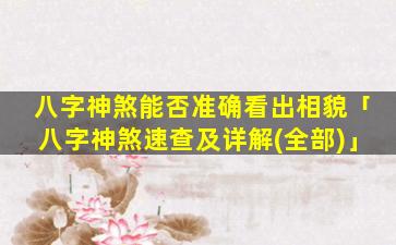 八字神 🦊 煞中,某,些神 🦊 煞与相貌有关联 🐈 性例如: