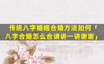 传统八字婚 🐟 姻合婚方法