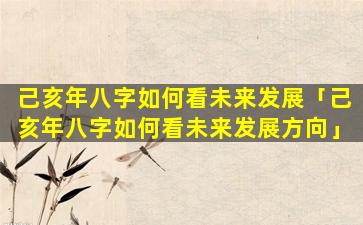 己亥年八字未 🐦 来 🐡 发展 🐟