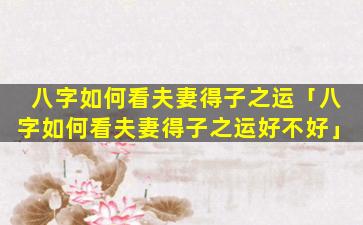 八 🐘 字看 🌷 夫妻得子之运好坏
