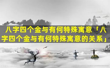 如果金为用神,则,四个金有利于事业发展主事业有成如果金为。忌神,则,四,个金。会带来 🐵 不利影响可能会健康受损事业不顺