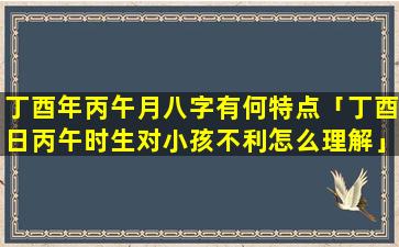 “丁 🐕 酉日丙午时生对小孩不利”的含义可以从以下几个方面理解: