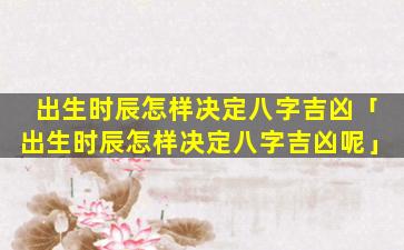出生时辰对八字吉凶的影 🦆 响