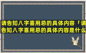 八 🐳 字 🐛 喜用忌的内容 ☘ :