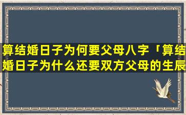算结婚日 🐧 子需要父母八字的原 🌼 因 🦍 :