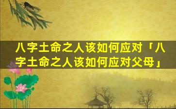 根据八字论 🌸 命的说法,土命人(日主属 🐦 土)应对父母的方式: