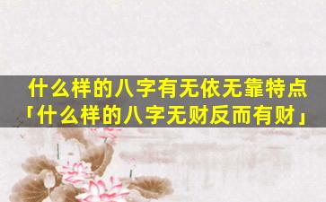 无 依无 靠 特 点 的 八 字 🐯 特 征