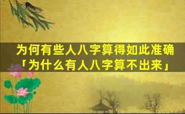 有些人 🐅 算八字 🍀 特别灵的原因: