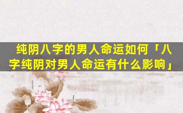 正统 🕷 命理学认为,八字纯阴对 🐵 男命的 🐎 影响主要是: