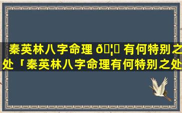 总体来看,秦,英,林,的八字命理 🦉 身弱桃花旺 🐘 事 🦄 业发展受阻感情波折。时,柱。食神制煞晚运相对稳定