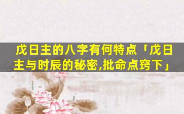 戊日 🌺 主与 🦈 时辰的 🌸 秘密