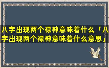 八字中出现两个 💮 禄 🐡 神的 🐅 含义: