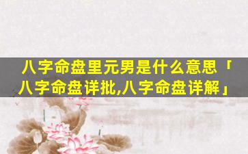 八字中“元 🦁 男”指 🐠 的是 🦊 :