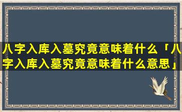 含义八字入库入墓 🐅 有以下几个方面的含义:
