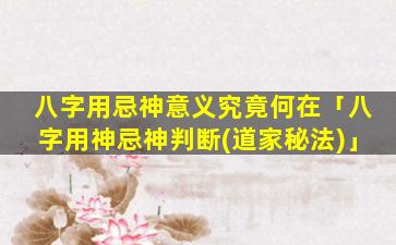 八字 🐱 用忌神 🦋 的意义