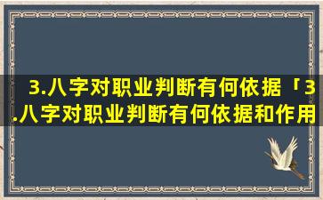 八字对 🐧 职业判 🦍 断的依据和作用 🌲