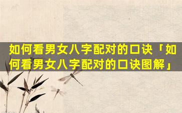 如 🐠 何看男女 🐦 八字配对 🌴 的口诀图解