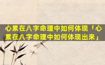 在八字命理中,"心 🐒 "累通常体 🌹 现在以下几个方面: