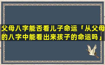 父母的 🌻 八字不能完全决定儿子 🕸 的命运,但可以作为参考。