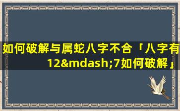 八字命理 🐘 中,属,蛇与某些生 🐺 肖相冲或相刑这被称为八 🐳 字“不合”。